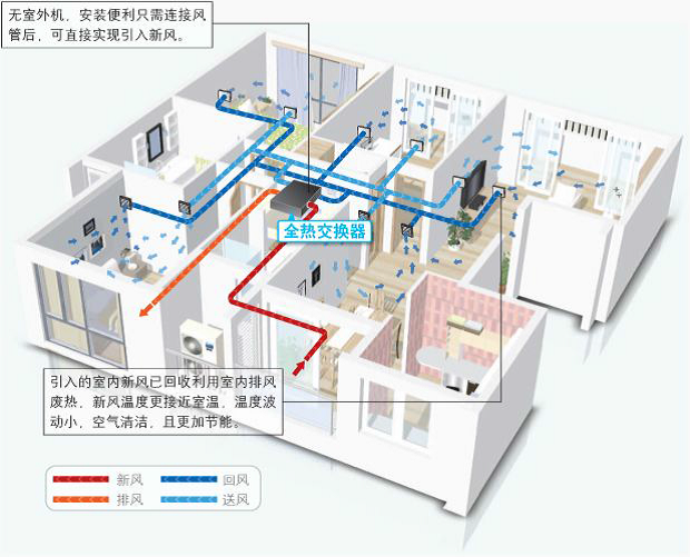 新風(fēng)換氣機(jī)是一種將室外新鮮氣體經(jīng)過(guò)過(guò)濾、凈化,熱交換處理后送進(jìn)室內(nèi),同時(shí)又將室內(nèi)受污染的有害氣體經(jīng)過(guò)熱交換處理后排出室外,而室內(nèi)的溫度基本不受新風(fēng)影響的一種高效節(jié)能,環(huán)保型的高科技產(chǎn)品。